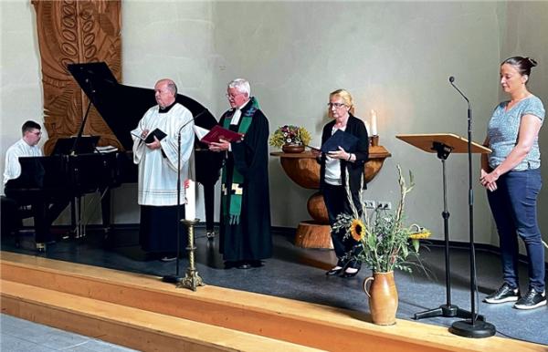 Wótlěwa: Katolski duchowny Udo Jäkel, faraŕ Manfred Schwarz, lektorka Madlena Norberg a Hanka Rjelcyna. Foto: Hartmut Leipner
