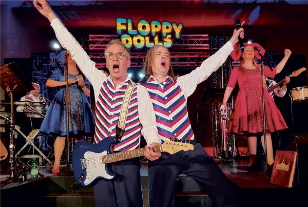 Wjelicnu źiwadłowu a muzikowu show su grajaŕki a grajarje respektiwnje gerce band Floppy Dolls w Hochozy skóro 60 pśiglědarjam póbitowali. Prězy wótlěwa: Měrko Brankačk a István Kobjela. Foto: K. P.