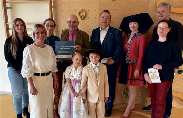 Biebersdorf/Njacyna. Mit einem farbenfrohen Auftakt in der Kita „Die kleinen Waldgeister“ in Biebersdorf in der Gemeinde Märkische Heide ist am 26. März die sorbische Ostereier-Malaktion 2026 im Landkreis Dahme-Spreewald offiziell gestartet. Landrat Sven Herzberger und die Sorben/Wenden-Beauftragte des Landkreises, Sabrina Kuschy, übergaben gemeinsam die ersten Ostereier an Kitaleiterin Kerstin Bullan und Bürgermeister Dieter Freihoff. Die Kinder begrüßten die Gäste in niedersorbischer Tracht und sorgten damit für einen besonders herzlichen Empfang.