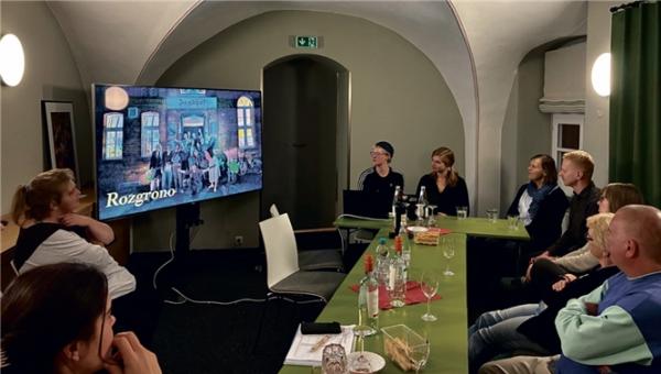 Cottbus/Chóśebuz. Am vergangenen Mittwoch, den 24. September, lud das Wendische Museum erneut zum Serbske blido ein. Rund 17 Gäste erlebten dabei einen besonderen Abend in lockerer Atmosphäre: Luka Golinski und Mira Dubian stellten ihren ersten Film „Pytaś a namakaś“ vor, der 2023 beim Filmfestival Cottbus mit einem Sonderpreis ausgezeichnet wurde. Der Film erzählt von einem queeren Coming-out – ein Thema, das im sorbischen Film bislang kaum sichtbar war. Golinski und Dubian beschreiten damit einen mutigen, wegweisenden Pfad und haben wohl mit dazu beigetragen, dass sich zuletzt mehrere queere Kunstprojekte in niedersorbischer Sprache entwickelt haben.