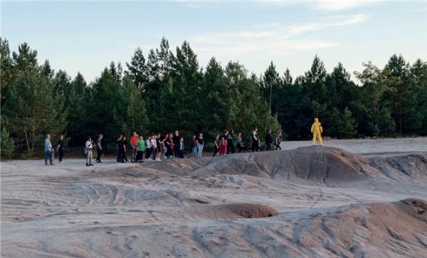 Lichterfeld-Schacksdorf. Ungefähr eine Autostunde von Cottbus entfernt befindet sich das Besucherbergwerk F60 bei Lichterfeld-Schacksdorf. Das Areal bot eine besondere Kulisse für die Premiere der Theaterperformance „MONDEN“ („Mjaseckoma“) am 19. September. Nach einer kurzen Begrüßung und Einführung aller Besucher wurden diese durch die Monden-Kooperative als Rekruten aufgenommen. Zur Ausrüstung gehörten eine Armbinde und Kopfhörer, mit einem Bus ging es in die Zone und das Schauspiel begann. Bis zum ersten Halt wurden die über 28 Rekruten auf ihre Aufgabe über die Kopfhörer vorbereitet. Als Rekrut war man aktiv an der Theaterperformance beteiligt. Während der Vorstellung konnte man sich zwischen zwei Kanälen entscheiden oder wechseln, zwischen Deutsch und Niedersorbisch. Einige Sequenzen waren im Vorfeld eingesprochen, andere waren live. Neben den beiden Ausbildern der Monden-Kooperative im Bus gab es noch zwei weitere Ausbilder, die sich frei im Gelände bewegten. Sie forderten auch die Rekruten auf, auszusteigen oder verschiedene Aufgaben zu übernehmen.