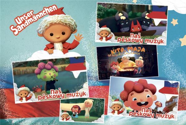 Źiwa žona, plon, Pumpot a druge serbske powěsćowe póstawy maju swój wjeliki wustup w seriji „Kito, Maja a kista cowańkow“ pla pěskowego mužyka. A to teke w dolnoserbskej rěcy! Kolaža: A. Günikerowa