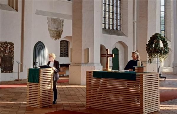 Ekumeniska namša dnja 3. oktobra w Nimskej cerkwi: (wótlěwa) lektorka Madlena Norberg a faraŕka Karin Rebiger. Foto: Adrian Reinfeld