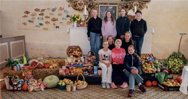 Tak wuglěda źěk za žni w Kśišowje. Źiśi su zežywidła za Chóśebusku toflu zběrali, a te su nejpjerwjej, ku góźbje namše, pyšnili městno pśed hołtarjom. Foto: Anika Redmannowa
