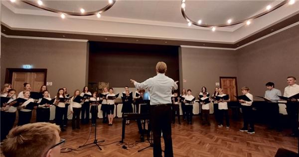 Ze Pšynego/Missen. Z kuždym pšawom jo šulski wjednik dr. Matthias Guttke wuzwignuł, kak gjardy wón jo na šulski chor Dolnoserbskego gymnaziuma (DSG). „To jo lěbda k domyslenju, gaž słyšymy, až dajo něnto 45 wuknicow a wuknikow w šulskem chorje.“ To se wě, až jogo zawjeźeńske słowa k nazymskemu koncertoju chora DSG, njeźelu w zalu Starego gósćeńca w Pšynem, su byli pśewšo chwalece słowa – ako za tych w chorje młodych sobustatkujucych tak teke za wšyknych pódpěrarjow, ako su to zmóžnili, až se take něco pśewjeźo. Koncert, rozmjej, jo se wótměł w ramiku chorowego lěgwa. Wót 9. do 13. oktobra su chorowe cłonki w Starem gósćeńcu póbyli, aby pilnje probowali za nazymski koncert a za gódownicce w decembrje – to pód nawjedowanim wukubłanego spiwańskego a muzikaliskego specialista Gerald Šejn wót Dompro a pód organizatoriskim a pedagogiskim nawjedowanim ceptaŕki Jennifer Dünnbierowa. Pśi tom wósebnje spomnjeśa gódne jo teke to lětniki pśesegajuce gromadu-statkowanje chorowych cłonkow, wót pětego lětnika až k studiumoju. „Dajo stakim teke absolwentow šule, ako nadalej w chorje spiwaju.