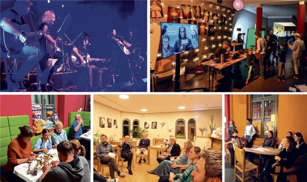 Tak su pokazali wšake „Serbske krotkofilmy“ a muzikowe wideo w Obenkinje. W kafejowni pśed kinom jo wuknikojska firma Dolnoserbskego gymnaziuma „Serbski Snack“ woglědarjow z pjaconym tykańcom, kafejom a tejom zastarała. Wušej togo stej ga dwě wuknicy w źěłowej drastwje gósći pśi źurjach wuwitałej a stej jim drogu k wóterym programowym dypkam a aktiwitam pokazałej. W barje Slow, pódla głownego zachoda, jo Astrid Šramina wót Serbskeje kulturneje akademije wucyła zajmcam, kak mógu gódowne kule z wóskom a serbskimi motiwami wupyšniś – jaden trend, kenž jo lětosa wósebnje woblubowany.