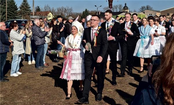 W dwójnem rěźe jo se ta zapustujuca młoźina pó jsy pórała, ze „serbski“ wupyšnjonym chóžyšćom naprědku. Fośe: Jill-F. Ketlicojc