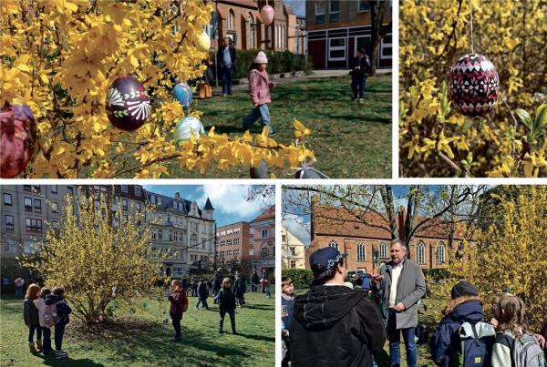 Z Města/Cottbus. Wót srjody slědny tyźeń jo naměsto slězy słyńcnego zegera ze kšasneju jatšowneju pychu wugótowane. Wěcej ako 60 źiśi chóśebuskego horta „Pünktchen und Anton“ jo tam wěcej ako 100 indiwiduelnje wupyšnjonych jatšownych jajow do krickow powjesało, mjazy nimi tek to jadno abo druge ze serbskimi motiwami. Pódpěrałej stej jich wušy šołta Tobias Schick kaž teke šołtowka Doreen Mohauptowa.
