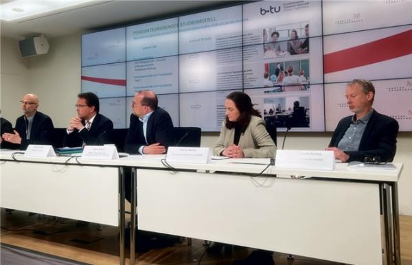 Z Pódstupima/Potsdam. „Witajśo k nam na BTU!“ Z tymi serbskimi słowami jo wiceprezident Bramborskeje techniskeje uniwersity Chóśebuz-Zły Komorow dr. Peer Schmidt wabił zajmcow za studium wuceńskego amta za pśedmjat serbšćinu w primarnem schójźenku, kótaryž se zachopijo na campusu w Złem Komorowje. Zajźony pětk jo wón studium w pódstupimskem krajnem sejmje na medijowej konferency pśedstajił a na pśizamkujucem pósejźenju Rady za serbske nastupnosći w Bramborskej wó wěcej detailach kaž wó wótběgu a natwari studiuma powědał.