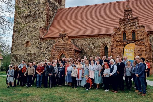 Wšykne, kenž su k 800. jubilejoju Skjarbošca něco pśinosowali, su se pśepšosyli na zgromadne foto pśed cerkwju, aby wóstali jim wósebne zarědowanje we spomnjeśu. Foto: K. P.