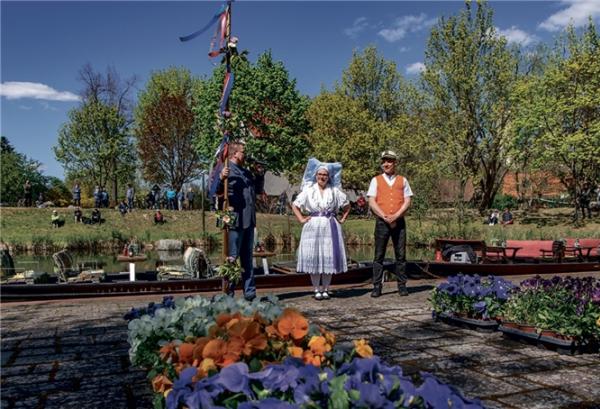 Der Straupitzer Bürgermeister André Urspruch übergibt das Rudel an die Vorsitzende des Heimat- und Fremdenverkehrsvereins Katrin Scheppan. Diese reichte es an den Hafenmeister Norman Muschka weiter (Foto v.l.). Foto: Peter Becker