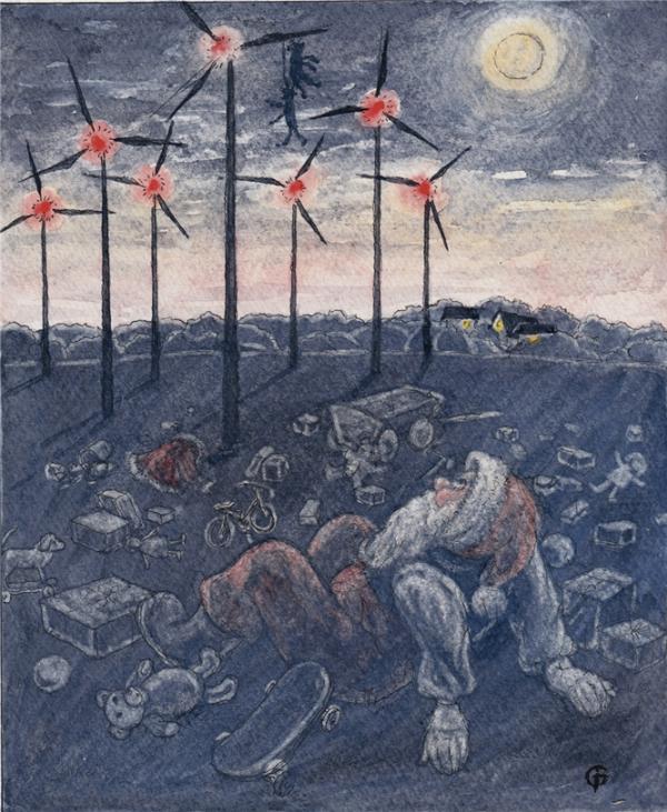 Der Morgen dämmerte, als der Weihnachtsmann am 25. Dezember mit seinem Rentierwagen vor seinem Zuhause, im dichtesten Tannenwald, hielt. Den Schlitten konnte er schon ein paar Jahre nicht mehr nutzen. Es schneite eben zu selten.